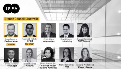 IPFA is a vibrant industry organisation that is focused on enabling the development of Energy and Infrastructure across Australia. In the current market the need for private finance to support the sector has never been greater and as co-chairs we see this as an opportunity to engage in a way that demonstrates the value that our community brings to our wider stakeholders. Our combined backgrounds in banking and consulting mean that we can strongly represent the varied interests of IPFA members and be advocates for our sectors.